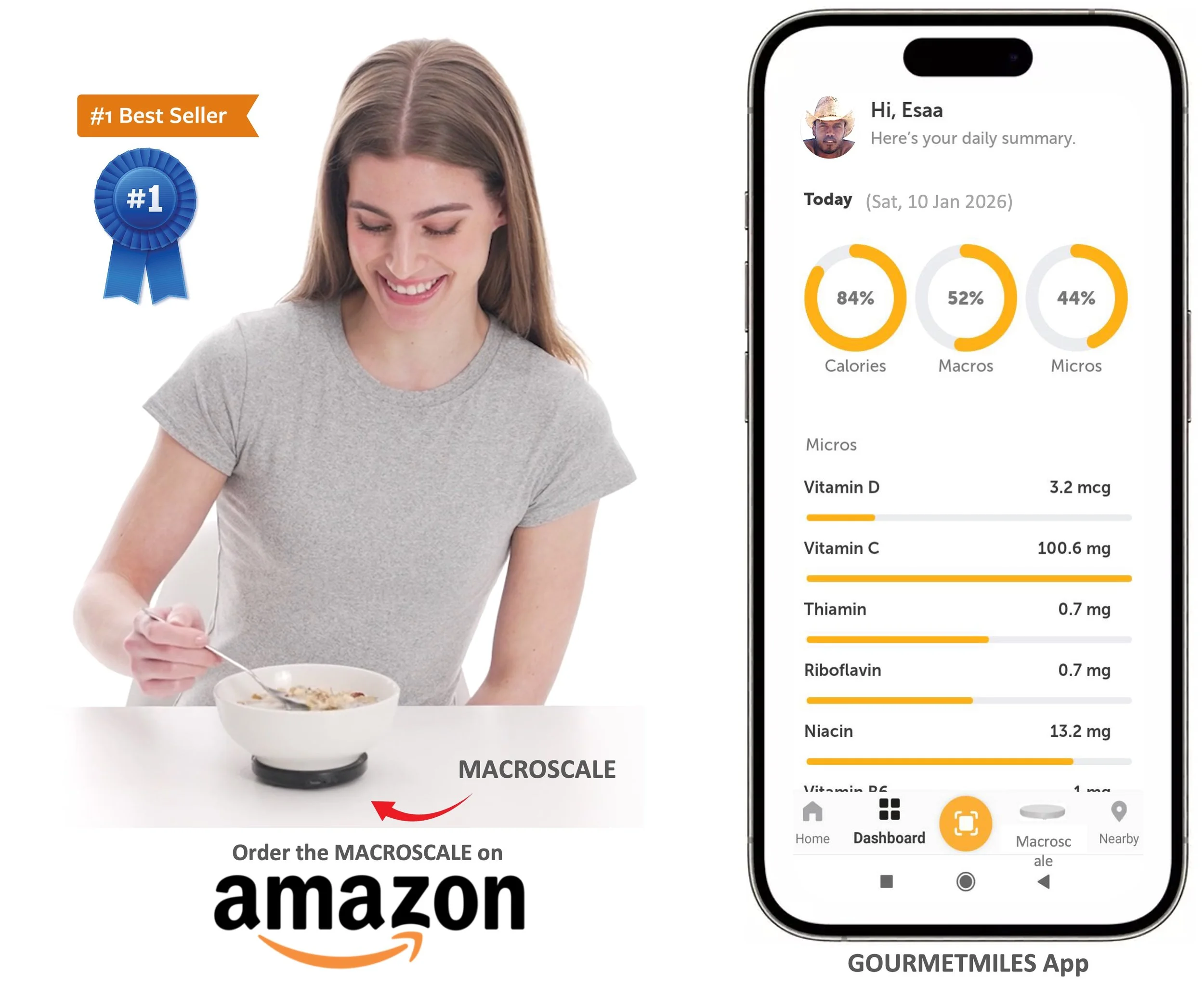 Holistic health starts with accurate diet tracking. The Gourmetmiles App and portable Macroscale accurately tracks and analyzes nutrition intake. Alerting you of calorie excesses, nutrient deficiencies, food allergies, and harmful ingredients. Making diet awareness and preventive health easier than ever.